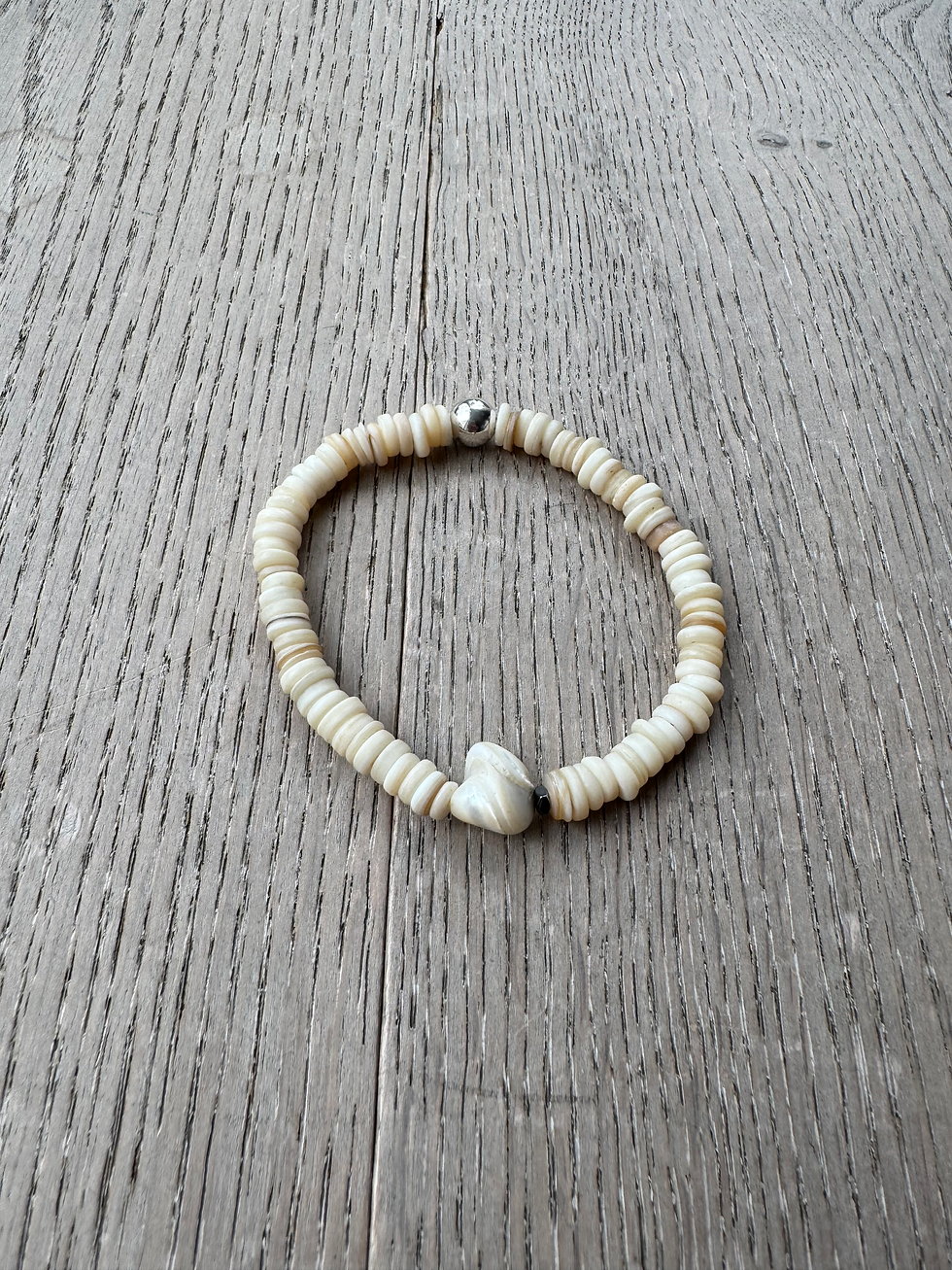 Bracelet de coquillage beige, pièce irrégulière et pièces en argent 925
